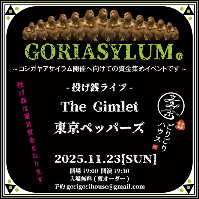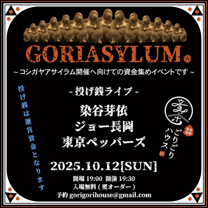 音楽茶屋ごりごりハウスでのライブは gorigorihouse@gmail.com までお願いします。(フルネーム、住所、連絡先の記載をお願い致します)